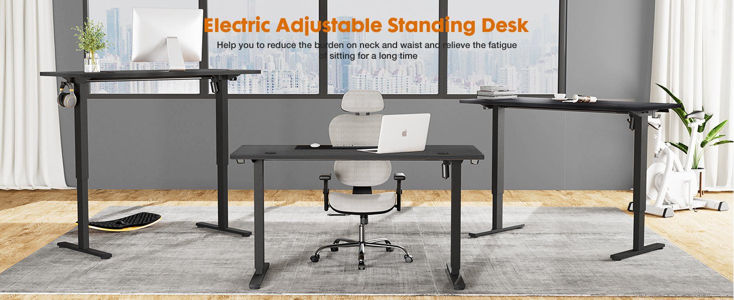 This electric height adjustable standing desk is designed to enhance your workspace, providing a blend of comfort, functionality, and health benefits.