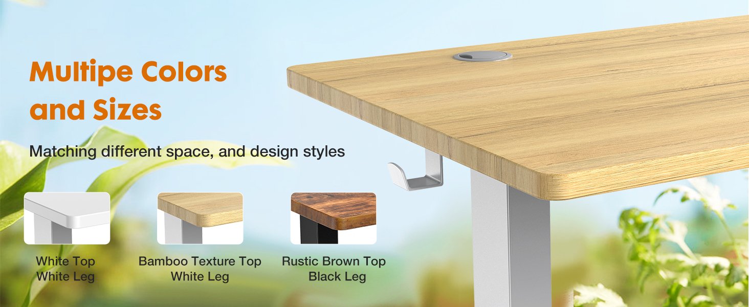 The electric standing desk offers a waterproof and wear-resistant splice tabletop. It is complemented by a wire collector and two hooks, ensuring your workspace remains clean and organized. This desks delivers ample space for all your work needs.