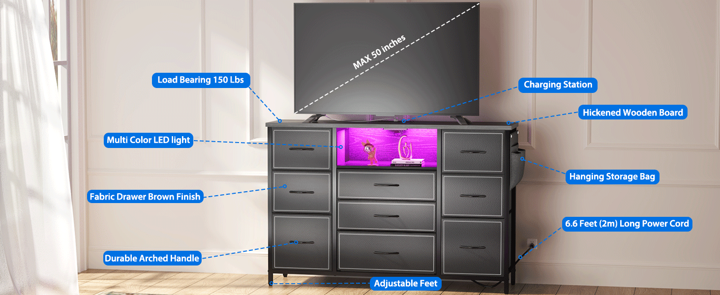 Multi-Purpose Furniture: This dresser is much more than just a storage solution—it can also serve as a TV stand, desktop, or nightstand. Its flexibility makes it ideal for small spaces and dorm rooms, offering ample storage and organization for various household items.