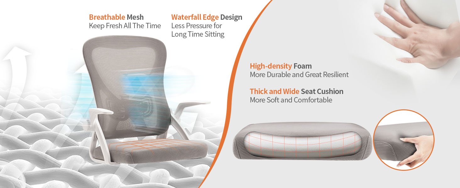 ✅ Heavy-Duty Mesh Office Chair: Constructed from premium polyester mesh and high resilience foam, the thick padded seat cushion ensures comfort and durability. This design prevents collapse even after prolonged sitting.
