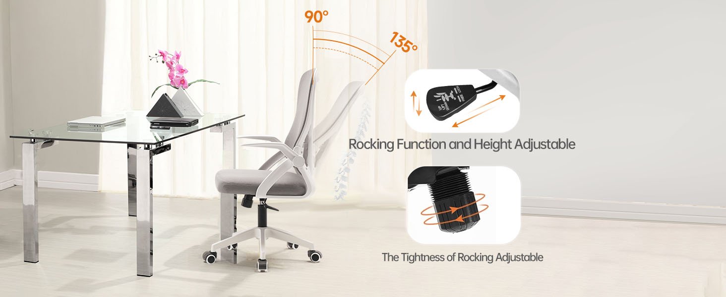 ✅ Adjustable Multiple Features Office Chair: The 90° flip-up armrests save space and are perfect for adults, kids, and teens. Class-4 gaslift adjustment ensures the chair fits perfectly, with a rocking function between 90-135° for post-work relaxation. Suitable for work, study, and entertainment.