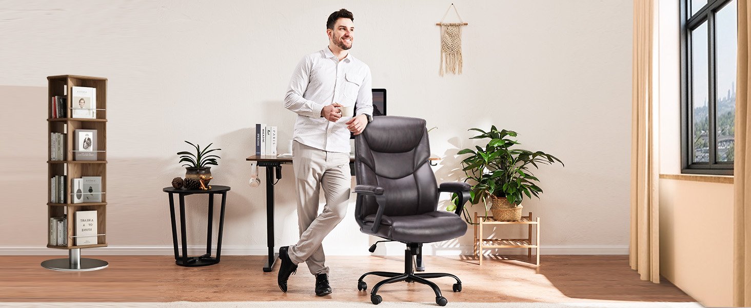This office desk chair includes a smooth gas lift mechanism, allowing you to adjust the height effortlessly by pushing a lever under the seat. The swivel chair can be set to various heights and tilt positions, ensuring the most comfortable and supported posture for both office and rest periods.