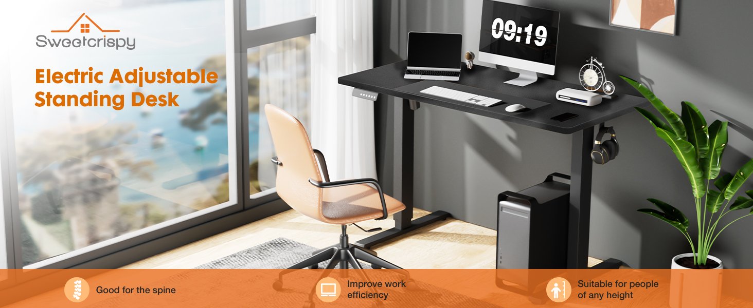 This electric height adjustable standing desk is designed to enhance your workspace, providing a blend of comfort, functionality, and health benefits.