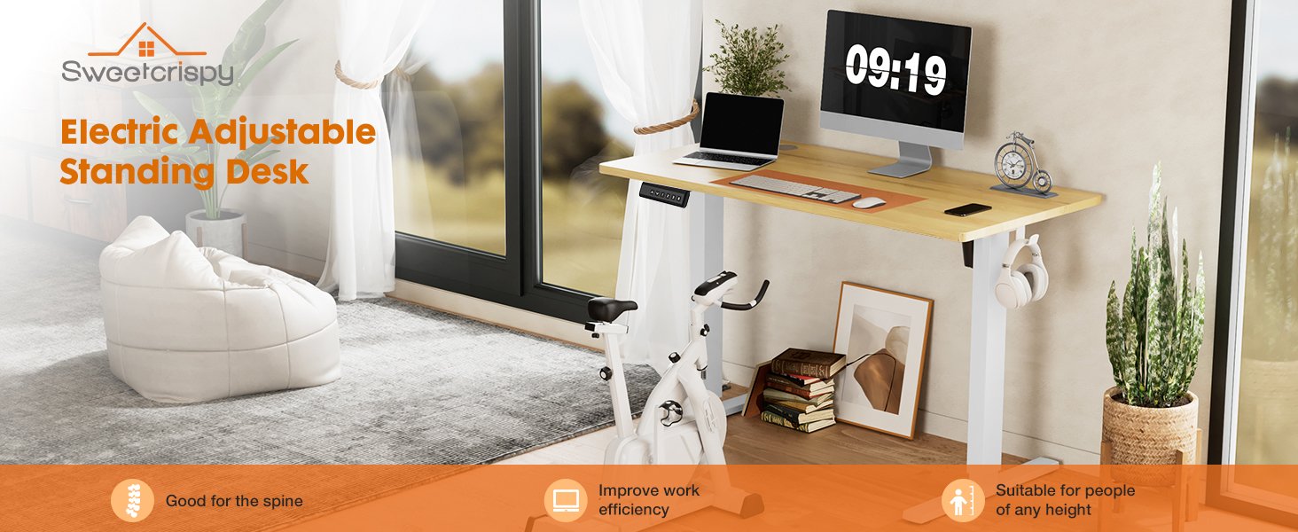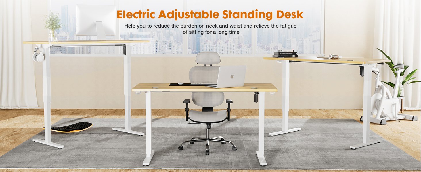 With its waterproof and wear-resistant steel splice tabletop, this electric standing desk offers a durable and spacious workspace. It comes equipped with a wire collector and two hooks, keeping your workspace clean and organized.