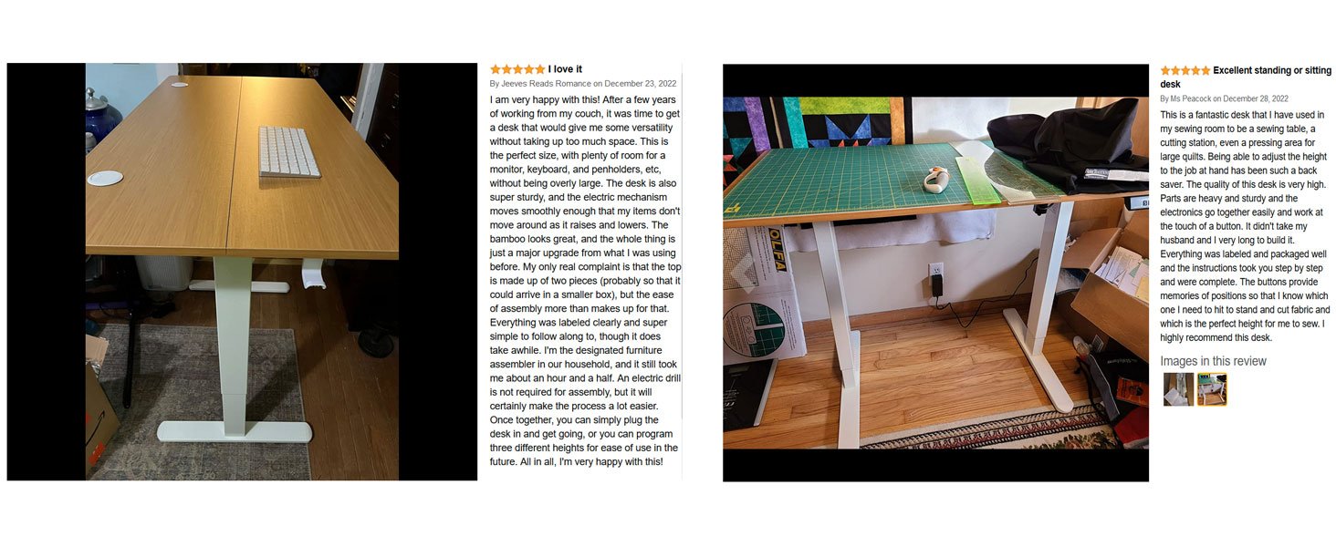 Our adjustable height desk is constructed with an industrial-grade alloy steel frame and a solid desktop that supports up to 176 lbs. Please note that the tabletop consists of two pieces and requires installation.