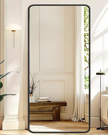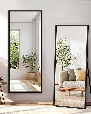Full-Body Reflection - Size and Scope: This standing mirror measures 64 inches long and 21 inches wide, ensuring a comprehensive view of your entire figure in a single glance. It's more than just a mirror; it transforms your space into a grand statement piece that elevates both your mood and your ambiance.