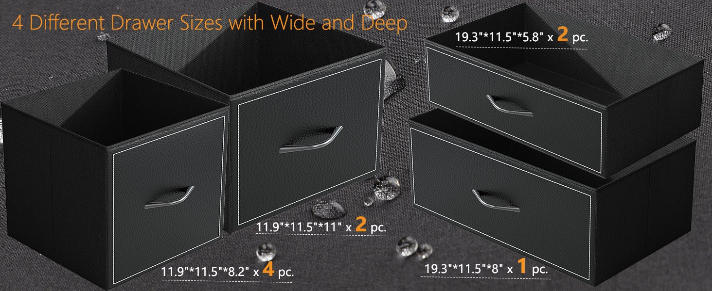 Versatile Storage: Our black dresser features 4 different drawer sizes, allowing you to efficiently organize your clothes, accessories, and other essentials. The large drawer is perfect for larger items, while smaller drawers are ideal for smaller, frequently used items.
