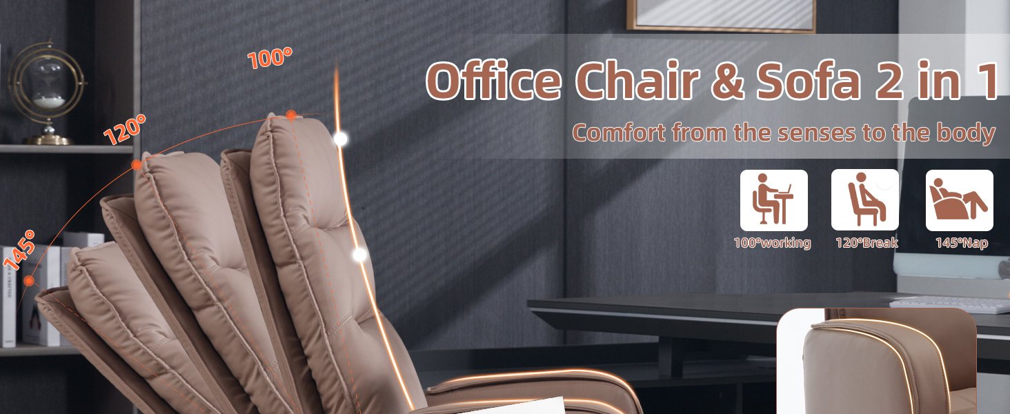 Experience all-day comfort with our thickened headrest and segmented padded high backrest, customized to fit the curve of your spine. The sunken surround seat and waterfall edge design keep you comfortably positioned even after long hours of sitting, promoting healthy posture and reducing back and lumbar pressure. Adjust the seat height and angle of the backrest from 100° to 145° to keep your muscles activated and prevent stiffness and pain. The retractable footrest provides an ideal rest position during naps.