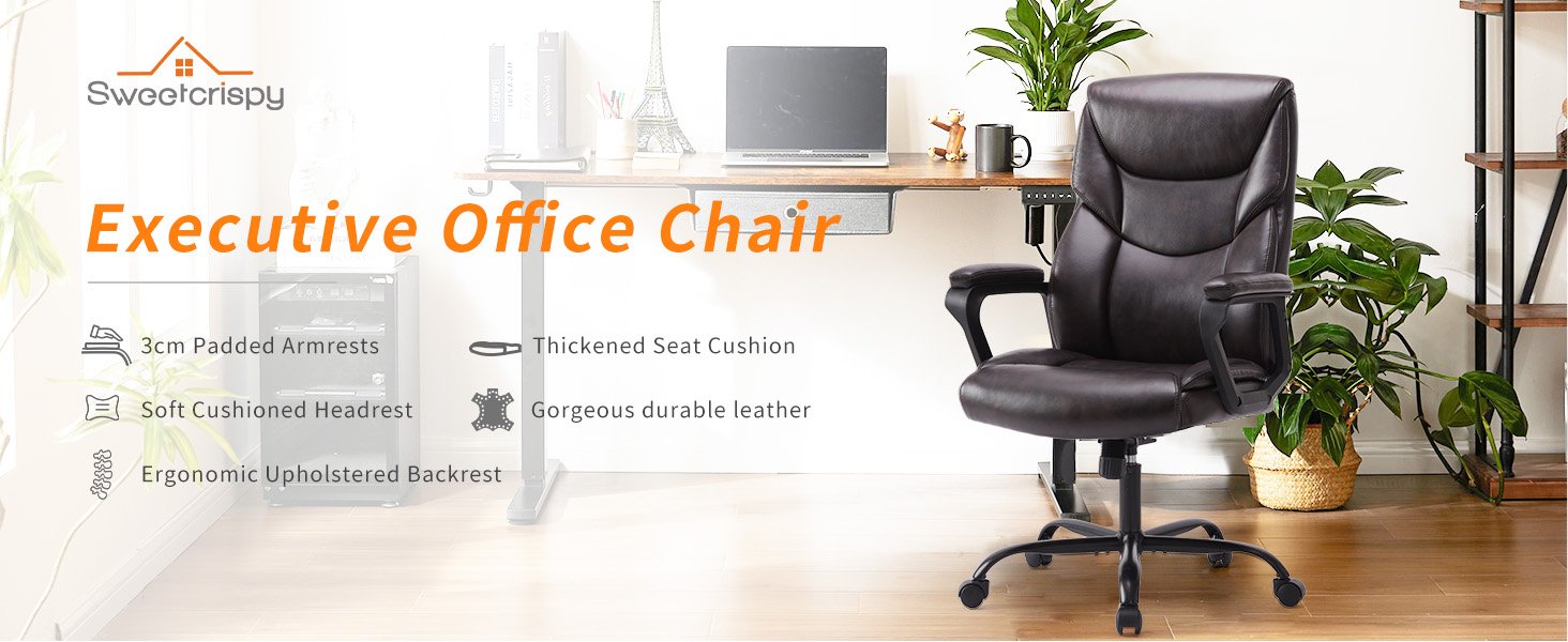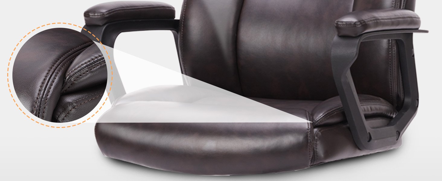 Crafted from premium upholstered leather, this ergonomic office chair features springs and foam cushions for unsurpassed comfort. The silver base and handles, coupled with the luxurious texture and finish of the leather, give this chair a sophisticated look fitting for any professional setting. The upholstered seat cushion and padded armrests ensure all-day support and comfort, making it ideal for extended office or conference room use.