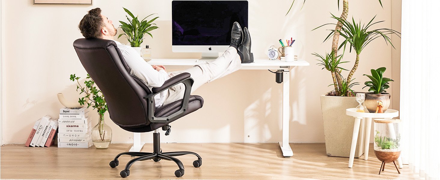 This office desk chair includes a smooth gas lift mechanism, allowing you to adjust the height effortlessly by pushing a lever under the seat. The swivel chair can be set to various heights and tilt positions, ensuring the most comfortable and supported posture for both office and rest periods.