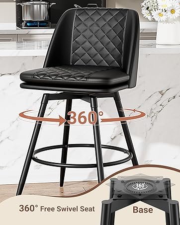 Silent and Precision Swivel Engineered with industrial-grade ball bearings, these swivel barstools rotate seamlessly and quietly, tested at <30dB – ideal for late-night conversations. The reinforced steel base supports up to 300lbs, 20% more than similar-priced competitors.